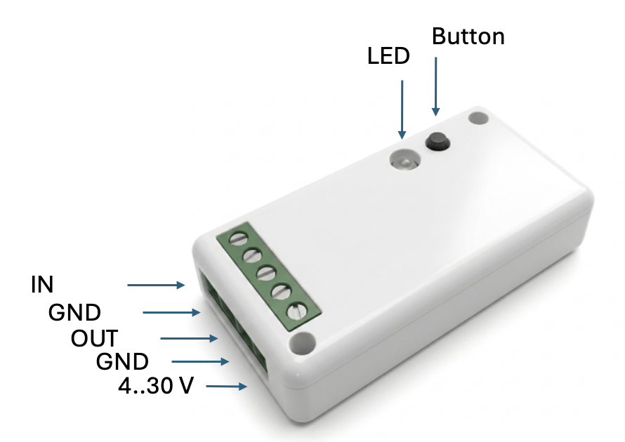 - Stromversorgung: 3–30 V DC über Schraubklemme oder USB-C