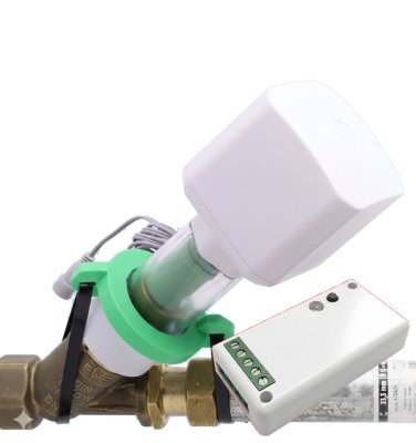 The motor drive for oblique seat valves (KFR valves) enables retrofitting of existing and already installed shut-off valves into remotely controllable intelligent devices, without interrupting the water supply or cutting into the water pipe.