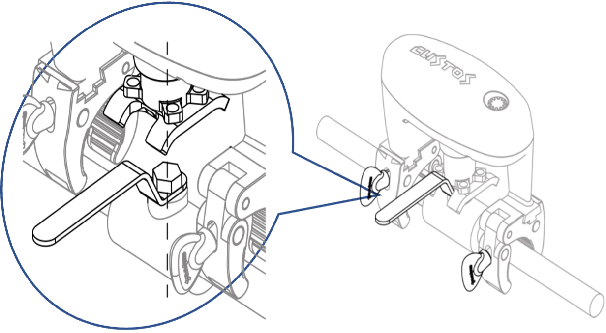 The pipe clamps are positioned in the center of the bracket in the factory state. They can be shifted to the right or left by turning them fully closed while not on the pipe. Shifting adjusts them to different pipe thicknesses.